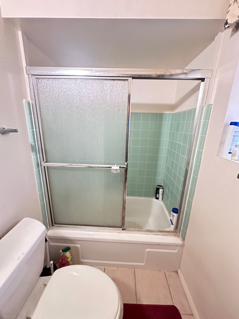 Finishing touches made all the difference. A new mixing valve was installed, along with a fresh chrome shower head and handheld. Three sturdy grab bars were positioned throughout the space for added safety and peace of mind. A simple chrome curtain rod and weighted shower curtain replaced the old sliding glass doors, keeping things light and open while maintaining privacy. Even the trim at the base of the shower was given careful attention, bringing the whole space together with a clean, polished look.