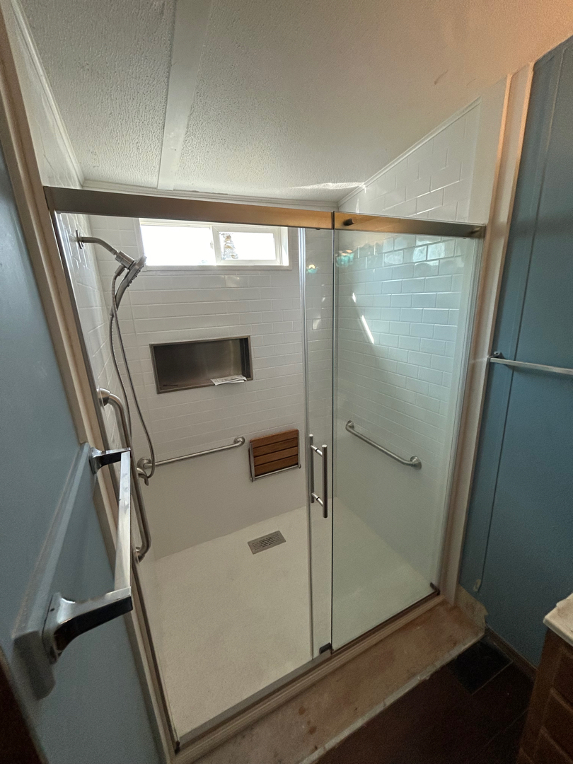 To complete the transformation, a sleek sliding glass shower enclosure was installed. Featuring a clear glass design and brushed nickel hardware, the enclosure includes a spot-resistant coating on the interior surface to help reduce water stains and keep cleaning to a minimum. It’s the perfect finishing touch for a shower designed with both form and function in mind.