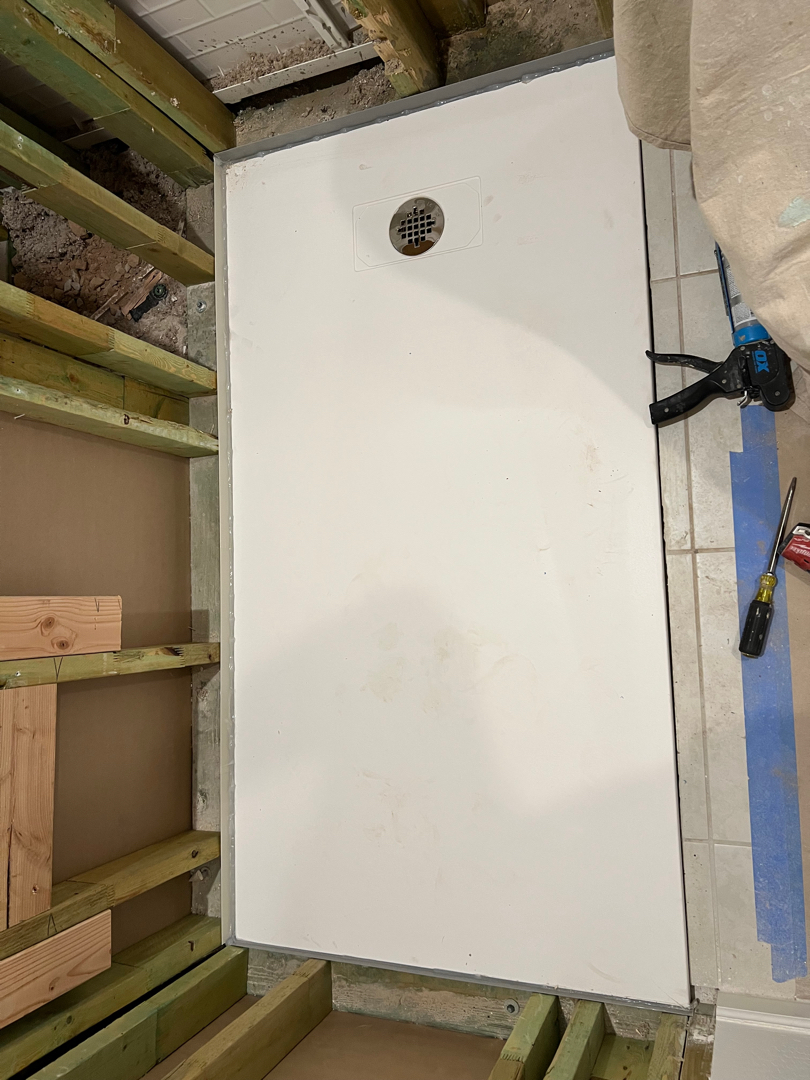 We kicked off the project with a full demolition, removing the existing shower pan, tub, surround, and plumbing valve. Everything was carefully hauled away to make room for the new setup. To ensure the rest of the home stayed clean and safe, we used a high-efficiency HEPA dust collection system to minimize any dust during the tear-down process.